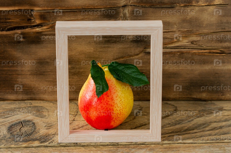 Свежая желтая спелая груша на деревянном фоне с копировальным пространством