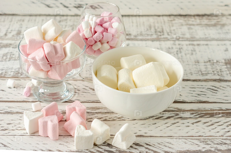 Зефирка. Крупный план красочных жевательных конфет Зефир. Сладкий десерт