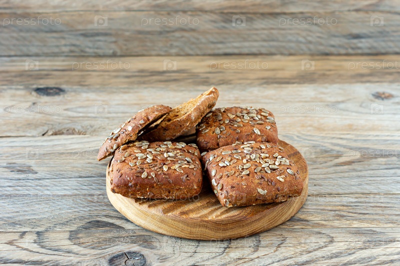 Крупный план ржаного многозернового хлеба на деревянном фоне. Домашний хлеб на завтрак