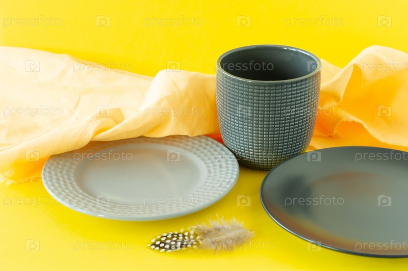 Набор посуды в модных цветах 2021 года - Ultimate серый и ярко-желтый Кухонная утварь