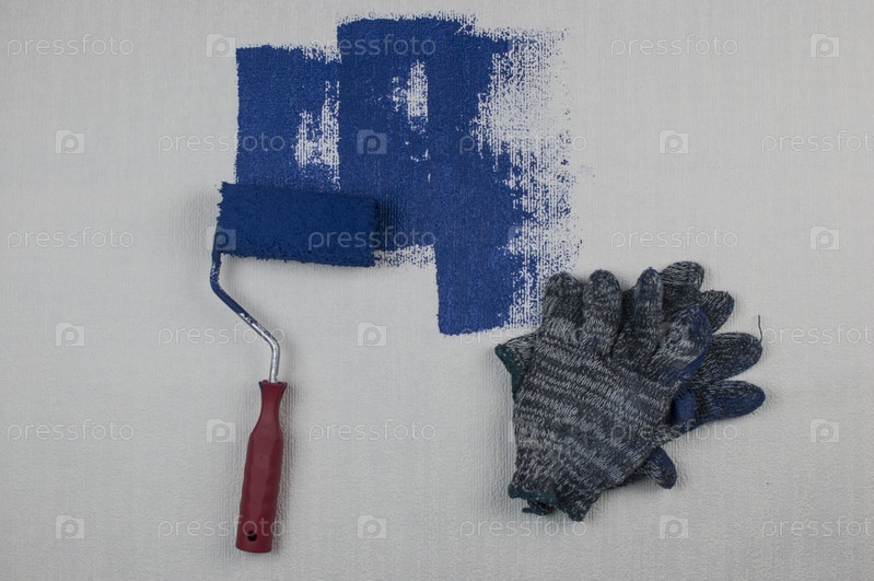 Роспись валиком, малярная работа по поверхностной росписи стен квартиры, ремонт темно-синей краской. Оставьте пустое пространство для копирования белым, чтобы рядом написать описательный текст