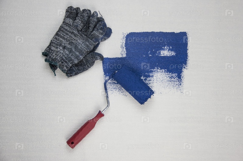Роспись валиком, малярная работа по поверхностной росписи стен квартиры, ремонт темно-синей краской. Оставьте пустое пространство для копирования белым, чтобы рядом написать описательный текст