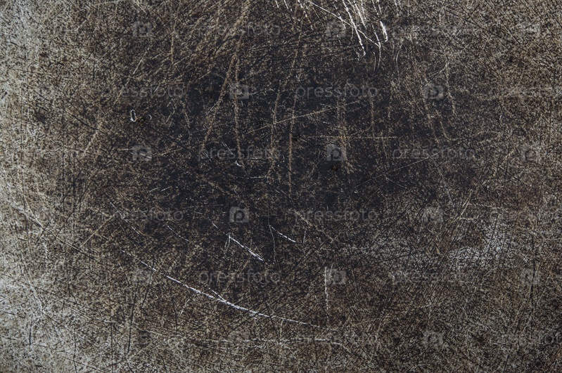 Поцарапанное дно старого железного горшка, брутальный металлический фон