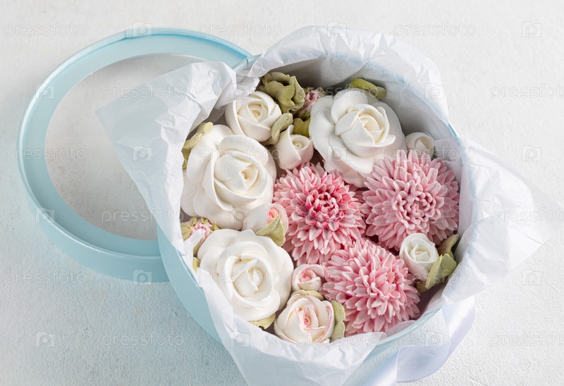 Домашний зефир в подарочной коробке на светлом фоне