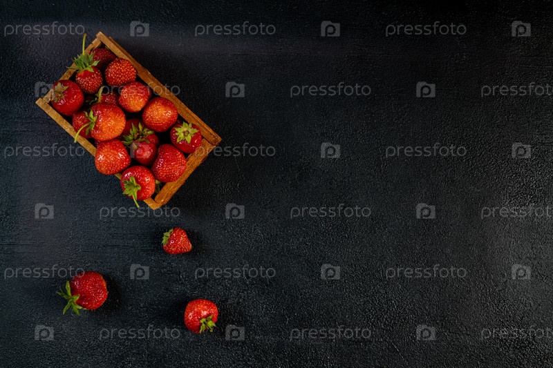 Клубничная ягода на темном виде сверху, пространство для копирования