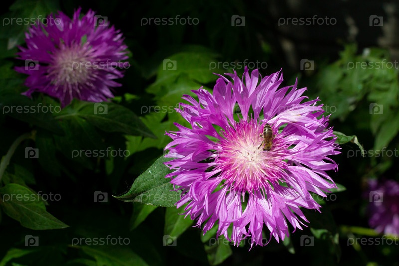 Крупный план красивого сиреневого василька на солнце с