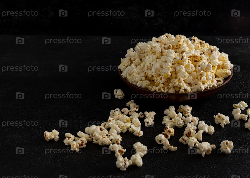 Чаша вкусного попкорна на темном фоне