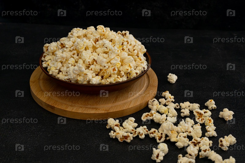 Чаша вкусного попкорна на темном фоне