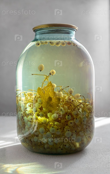 Компот из белой смородины, банка на белом фоне