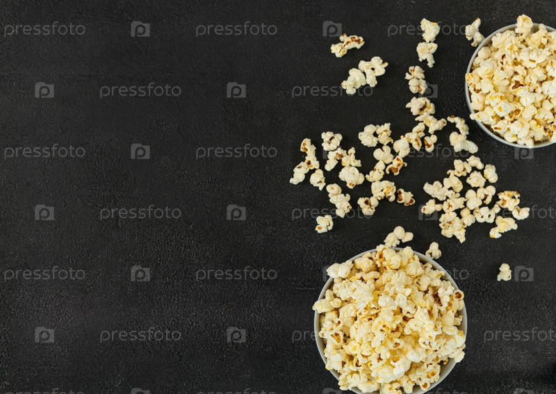Чаша вкусного попкорна на темном фоне, натуральная вкусная еда для просмотра фильма