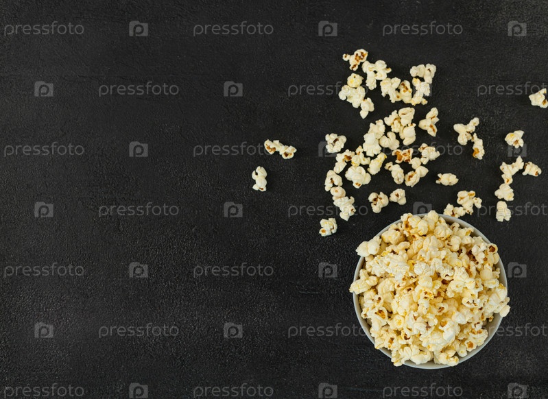 Чаша вкусного попкорна на темном фоне, натуральная вкусная еда для просмотра фильма
