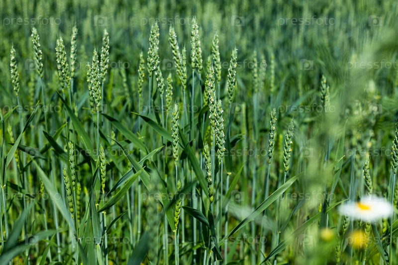 Зеленые колосья пшеницы в поле