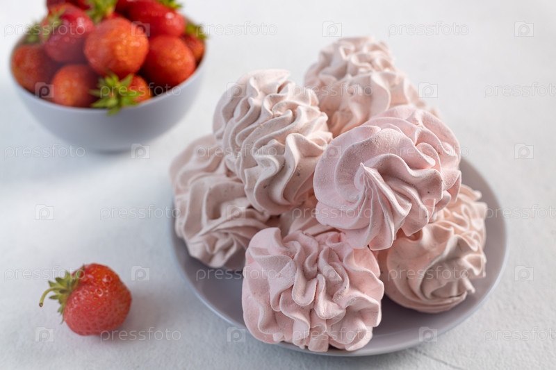Домашний розовый зефир клубники-зефир или на светлом фоне