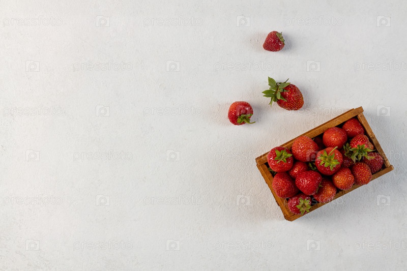 Клубничная ягода на светлом виде сверху, пространство для копирования