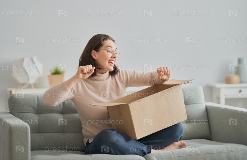 Женщина держит картонную коробку