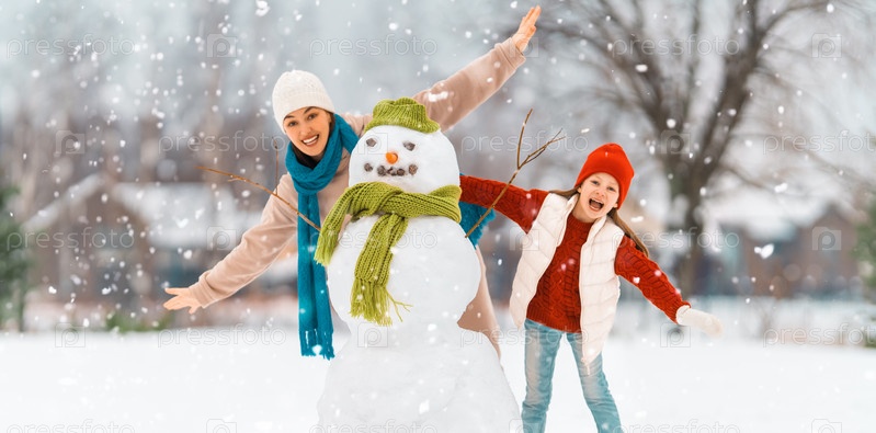 Мать и девочка на зимней прогулке