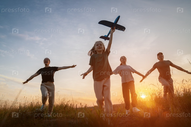 Счастливая семья на закате