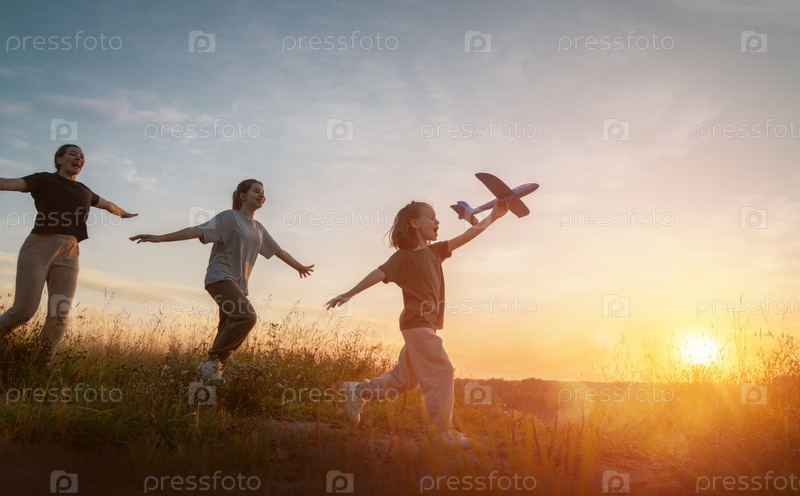Счастливая семья на закате