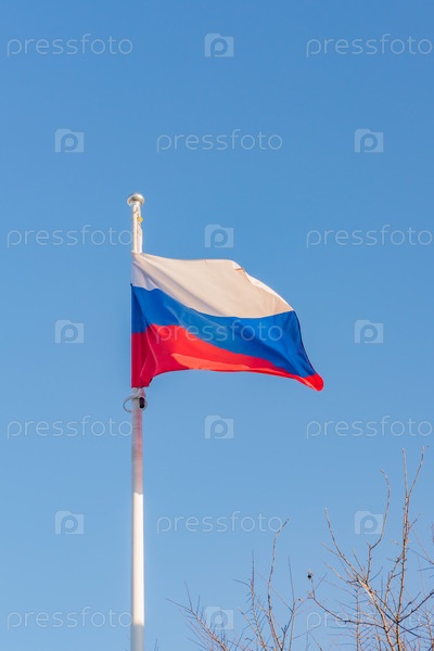 Российский флаг на фоне голубого неба