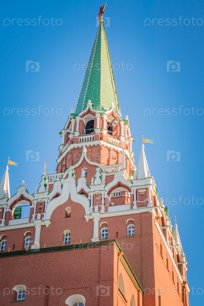 Троицкая башня Московского Кремля на фоне голубого неба
