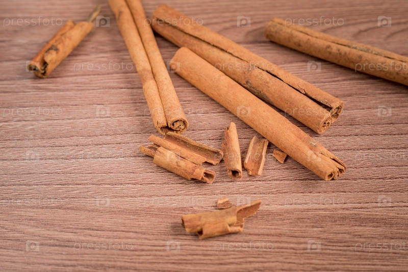 Палочки корицы на деревянный стол