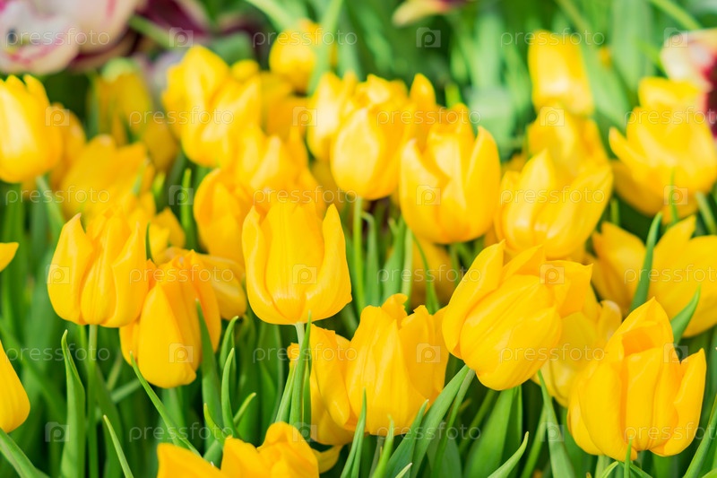 Поле цветущих желтых тюльпанов