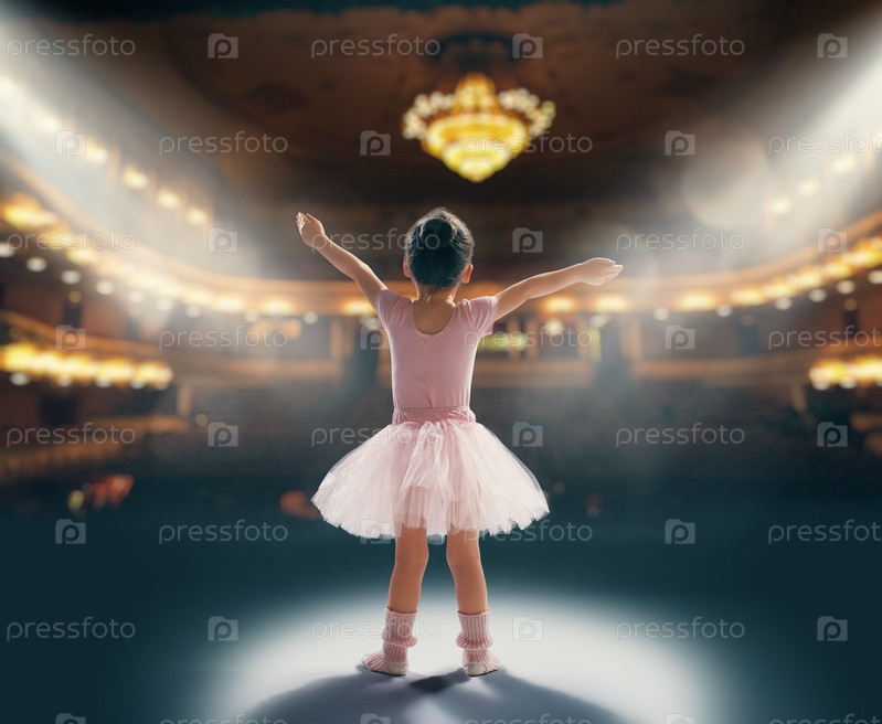Девочка мечтает стать балериной, вид со спины, театр, выступление