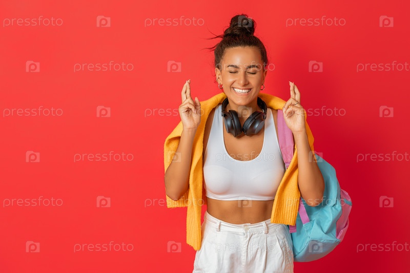Молодая женщина на ярком фоне
