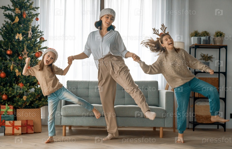 Семья празднует рождество