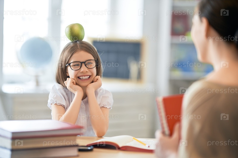 Девушка с учителем в классе
