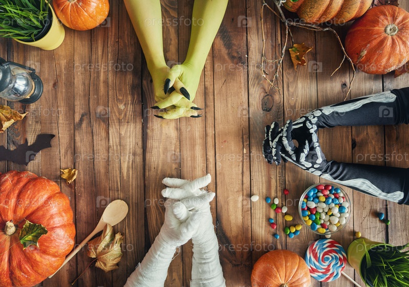 Семья празднует Хэллоуин