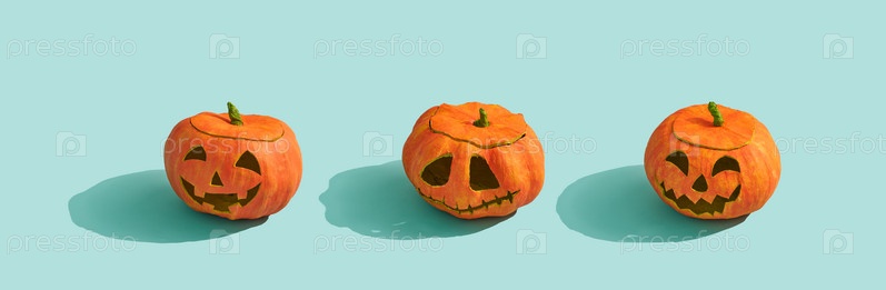Фонари тыквы на бирюзовом фоне