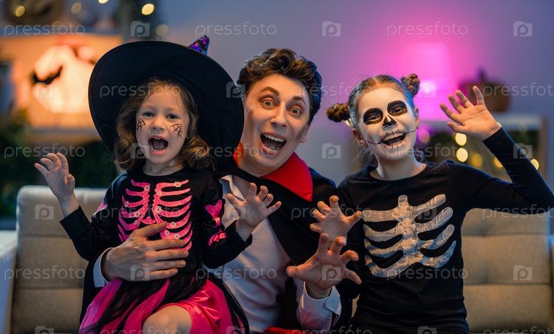 Счастливая семья празднует Хэллоуин