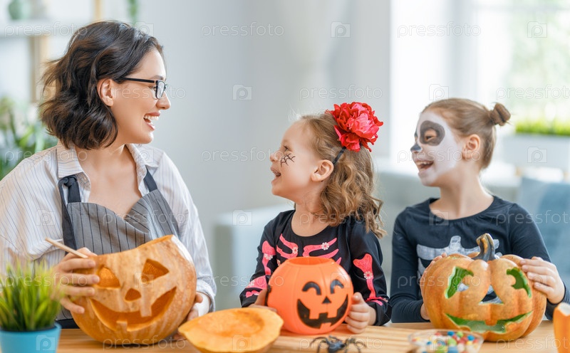 Счастливая семья готовится к Хэллоуину