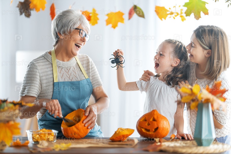 Семья готовится к Хэллоуину