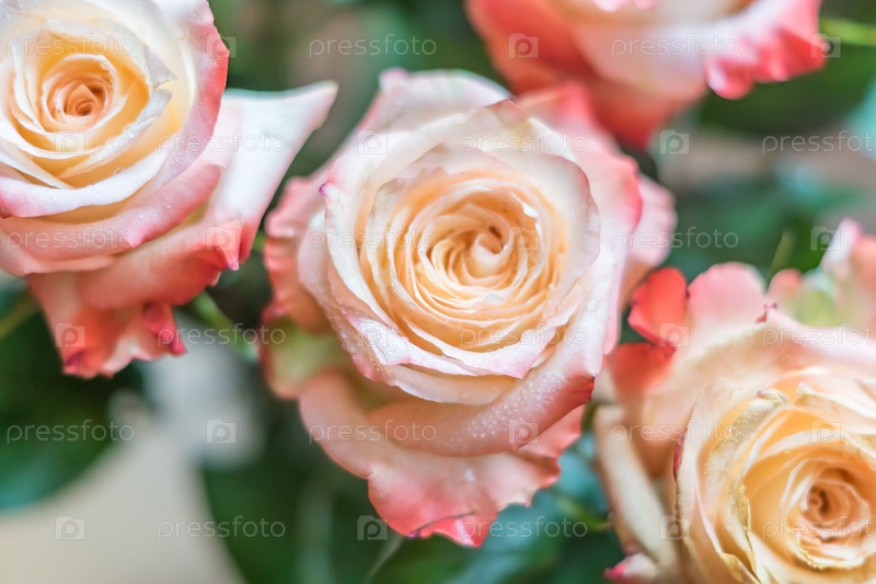 Крупный план розовых роз с каплями воды. Цветочный фон