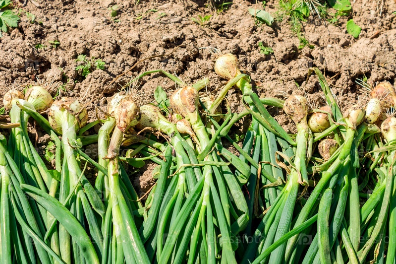 Урожай лука подряд на земле крупным планом
