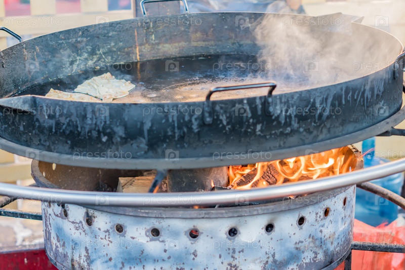Крупный план уличного круглого мангала