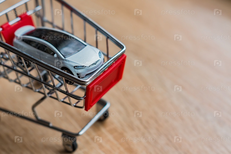 Москва, Россия - 17 февраля 2018 г.: Игрушечный автомобиль Tesla Model X в маленькой корзине. Концепция с копировальным пространством