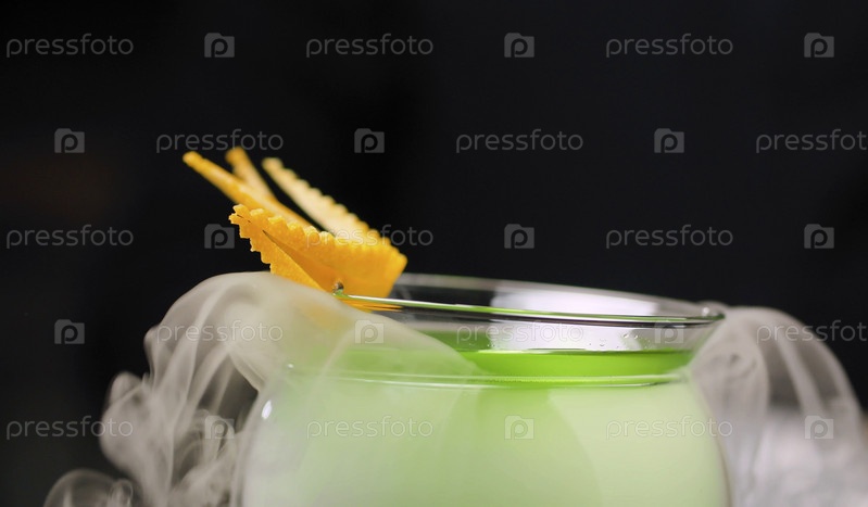 Охлаждение коктейля Виноградный Мартини в миске с сухим льдом