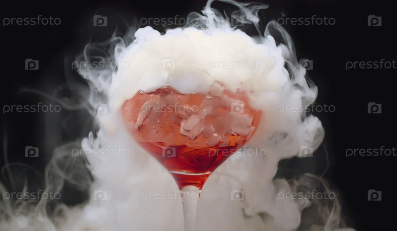 Стакан красного коктейля с сухим льдом