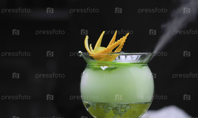 Охлаждение коктейля Виноградный Мартини в миске с сухим льдом