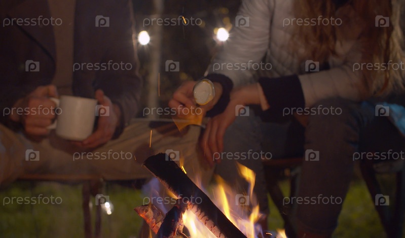 Молодая счастливая пара возле костра