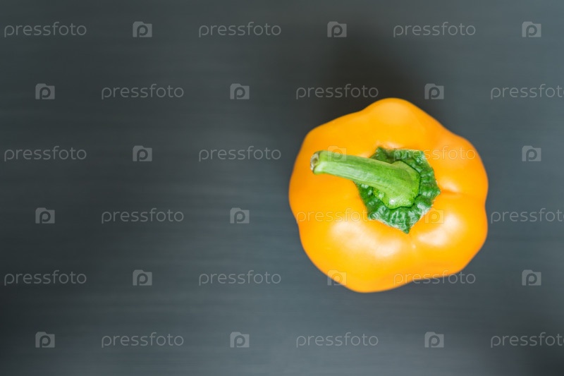 Оранжевый сладкий перец на черном фоне, вид сверху, место для копирования текста