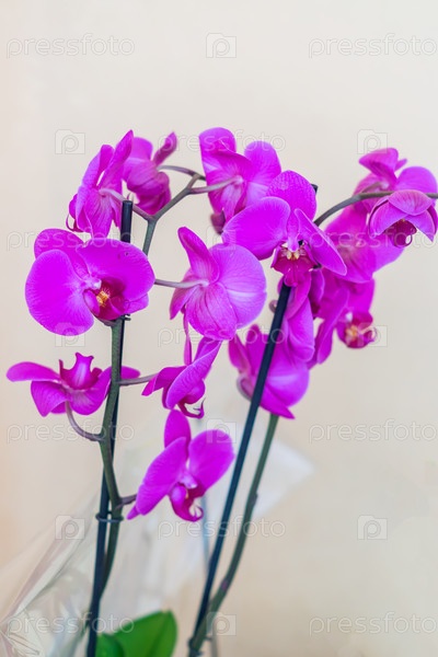 Фиолетовый цветущий цветок орхидеи фаленопсис на белом фоне. Домашнее растение