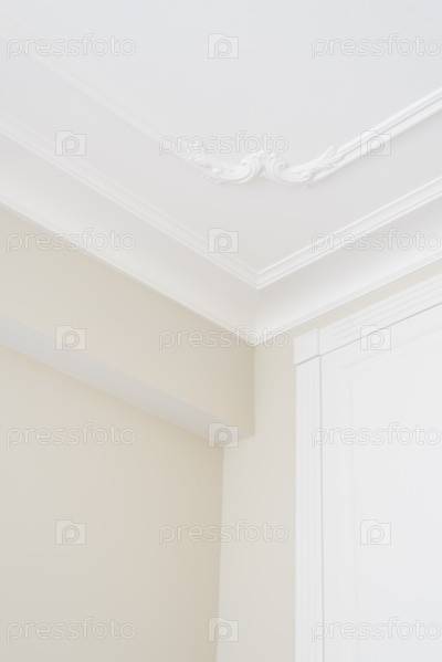 Текстура угла потолка и белая стена с рисунком