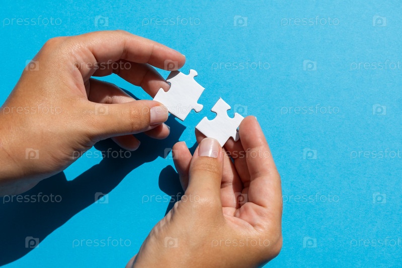 Соедините кусочки головоломки руками, чтобы завершить линию. Концепция успеха