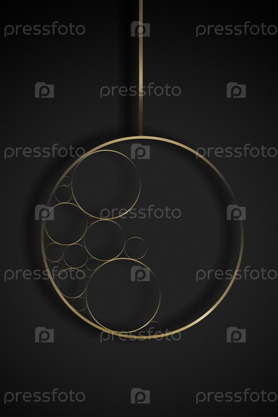 На черном фоне иллюстрация золотого елочного шара для новогоднего оформления в графическом дизайне