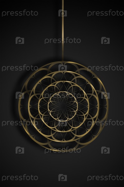 Новогодний шар золотого цвета на черном фоне для новогоднего и рождественского оформления графического дизайна