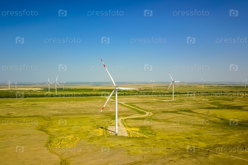 Возобновляемая зеленая энергия, энергия ветра с ветряными мельницами или ветряной турбиной